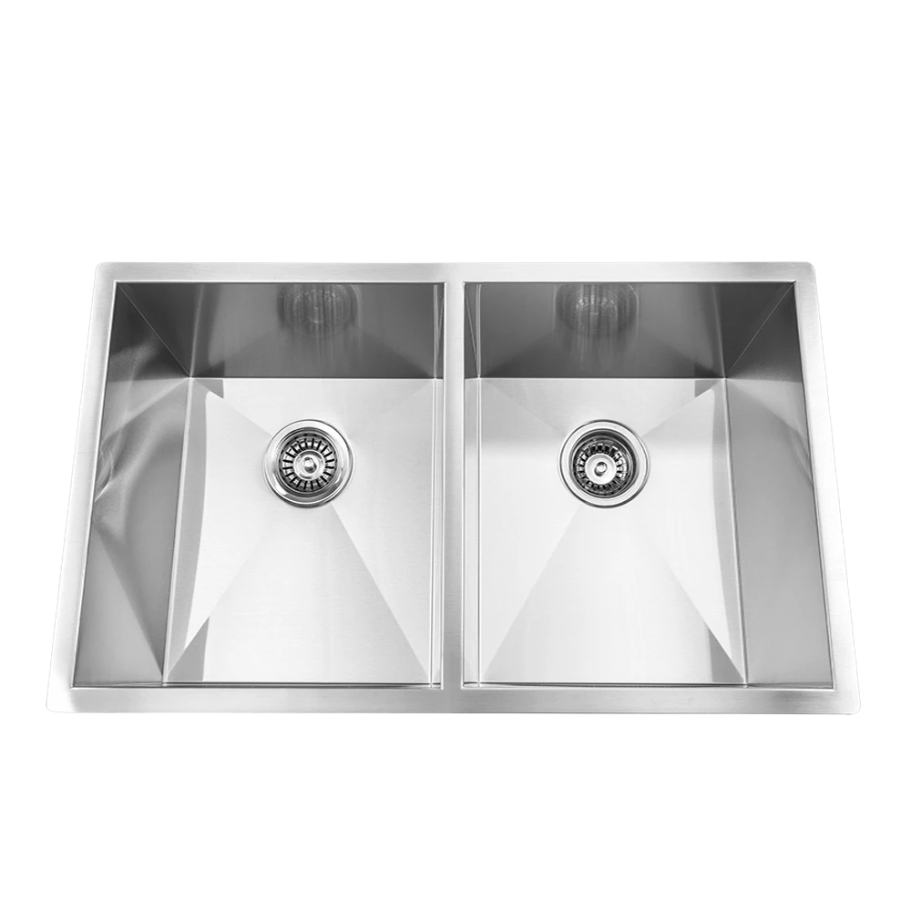 Edgy modern double bowl square sink built with 18 gauge stainless steel. It is hand-crafted to perfection, and its straight corners maximize your freedom of movement.
